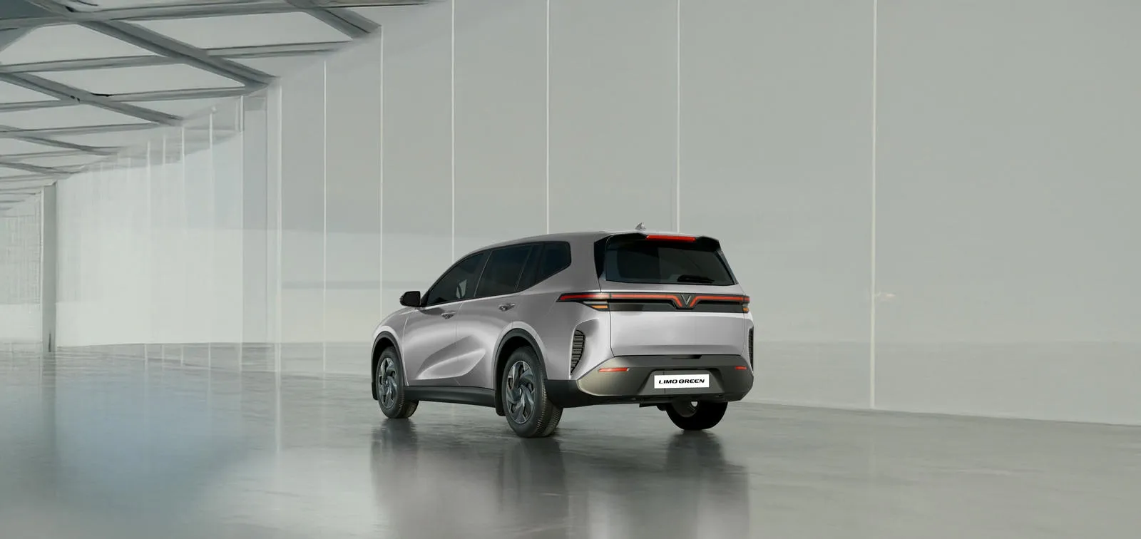 Đuôi xe Limo Green xuất hiện 2 khe gió giả dặt dọc hai bên, cánh gió mui tích hợp đèn phanh trên cao, cản va sau kích thước lớn, tích hợp 2 dải đèn. Cùng với đó là sự xuất hiện của màu sơn đen tại nhiều vị trí như viền cản trước, sau, hốc hút gió trước, sau, vòm ốp bánh xe, viền dưới của thân xe..., tạo hiệu ứng trẻ trung, hiện đại cho mẫu MPV điện của VinFast.