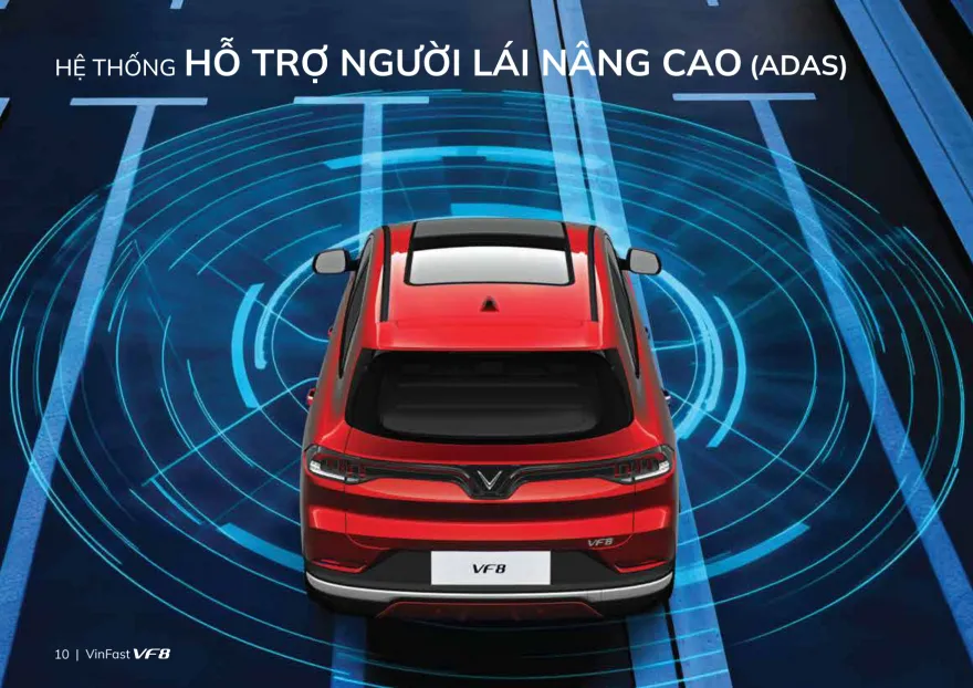 ADAS - Công nghệ hỗ trợ lái xe thông minh, an toàn đã được VinFast trang bị trên các dòng xe xăng và xe điện VinFast VF e34, có thể kể đến các tính năng như: giám sát hành trình thích ứng, hệ thống giám sát xung quanh 360 độ, cảnh báo điểm mù,...